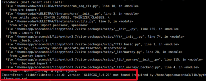1. ImportError: /usr/lib64/libstdc++.so.6: version 'GLIBCXX_3.4.21' not found 오류 발생
